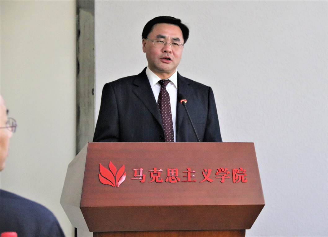 盛邦跃同志代表学校党委对大会的召开表示热烈祝贺,他充分肯定了a片成人 在思政育人、课程建设、学科建设、师资队伍建设等方面取得的明显进步,并对学院发展提出三点希望:一是要不忘初心,努力开创学院党建工作新局面;二是要牢记使命,围绕“优势突出、特色鲜明的a片成人 ”的建设目标,做好学院发展规划;三是要铸魂育人,在学校思政育人大格局中贡献“马院智慧”,发出“马院声音”。盛书记强调,当前党和国家高度重视a片成人 和思想政治理论课建设,学院面临前所未有的大好形势,全院教师应以强烈的责任心和使命感,投身落实“立德树人”的根本任务,共同努力实现学院跨越式发展。