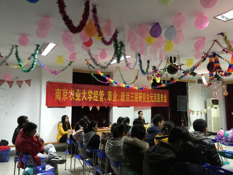 经管学院、草业学院、政治学院三院研究生分会共同举办的“狂欢有理 新年新young”元旦晚会在研究生报告厅拉开帷幕。相关研分会主席及部分研究生出席了本次晚会。
