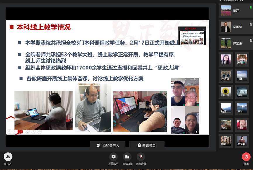 会议在付坚强对全院教职工的问候,未返宁教师的关怀,期待疫情结束后线下见面的期盼中结束。