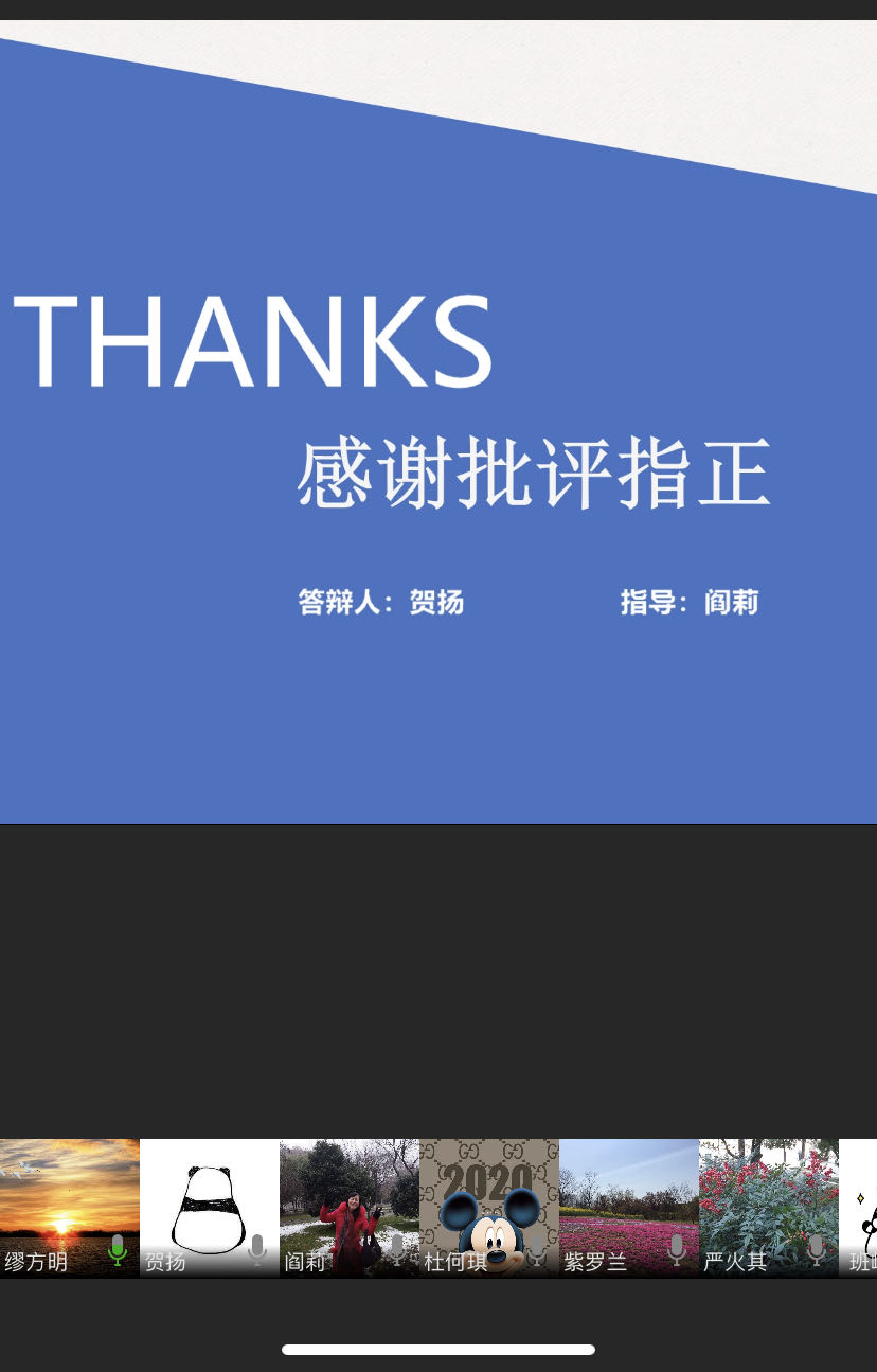 整体来看,本次毕业论文的云端预答辩取得了圆满成功。答辩学生不仅可以现场演示PPT内容,且也能在第一时间对导师的问题做出相应的回应。相比于传统的“面对面”论文答辩,云答辩除了“只闻其声、不见其人”的特点外,其余均能满足毕业预答辩的各项需求。这是一次成功的尝试。