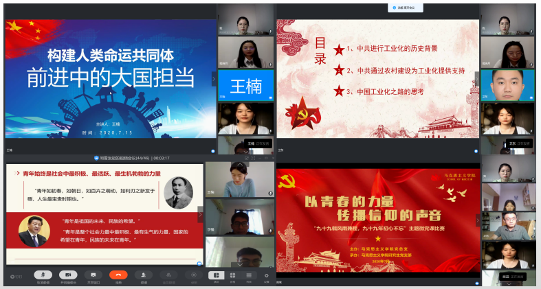 使命呼唤担当,初心引领前行。7月15日下午,a片成人 “九十九载风雨兼程,九十九年初心不忘”微党课大赛暨信仰公开课学生讲师选拔赛在钉钉平台顺利举行。校党委宣传部、党委教师工作部副部长陈洁,校团委副书记朱媛媛,a片成人 党总支副书记杨博,a片成人 陈蕊老师担任比赛评委。校团委姚敏磊老师、a片成人 辅导员巩欢老师出席活动,a片成人 全体研究生党员、入党积极分子集结云端观赛。