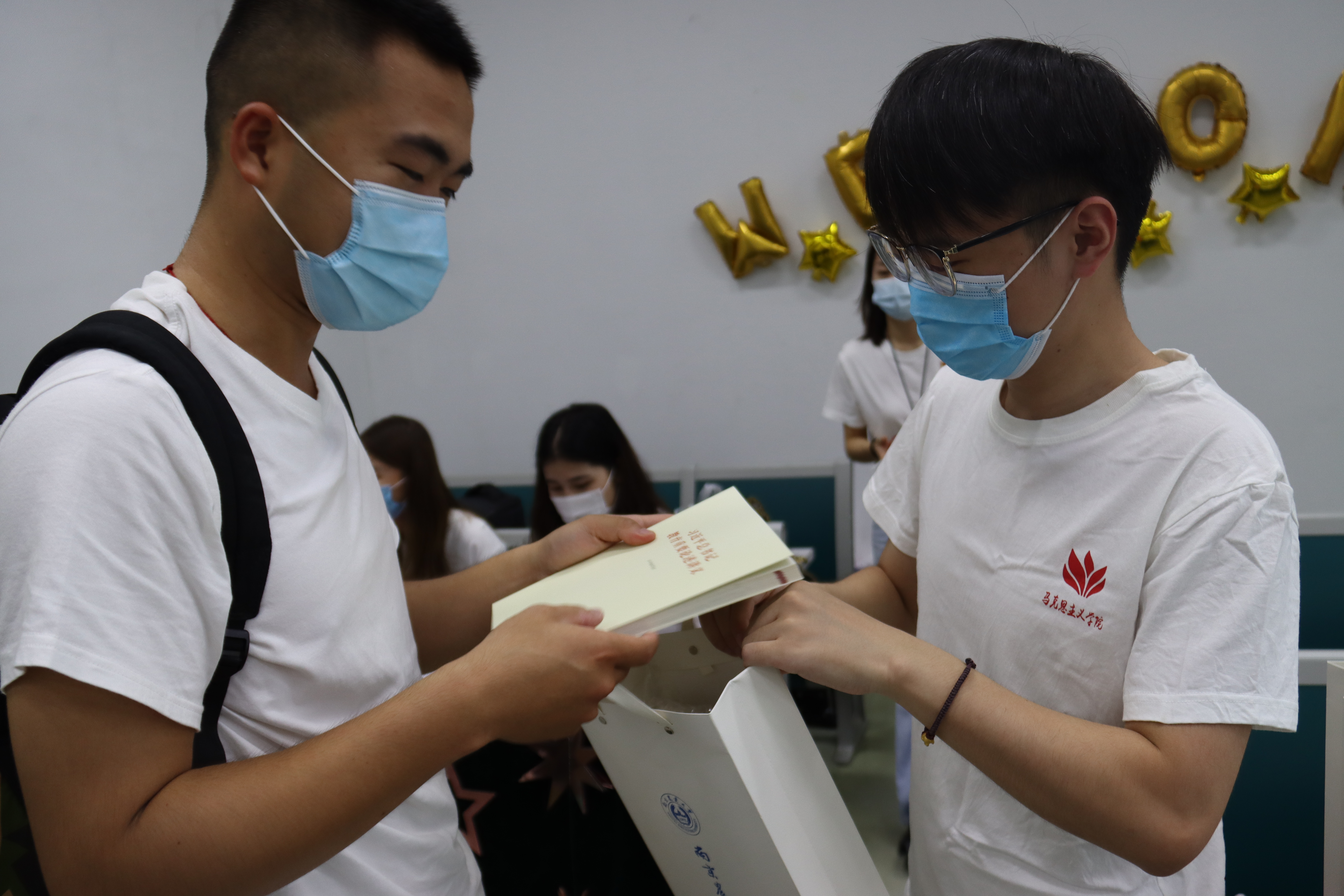 学院以“薪火相传,星马续航”为迎新主题,传承红色精神,弘扬先进理论,贴合学校“新遇南农,‘星’耀南农”的主题。报道现场以“星”为主线,精心布置,点点红星璀璨耀眼;研究生党支部在迎新现场设立“党员示范岗”,成立党员志愿服务队,积极发挥党员先锋模范作用;a片成人 精心准备防疫大礼包,为新生们的健康安全保驾护航;马院专属文化衫增强同学们的归属感和凝聚力;赠送学习书目——《习近平总书记教育重要论述讲义》增强新生们的理论学习。