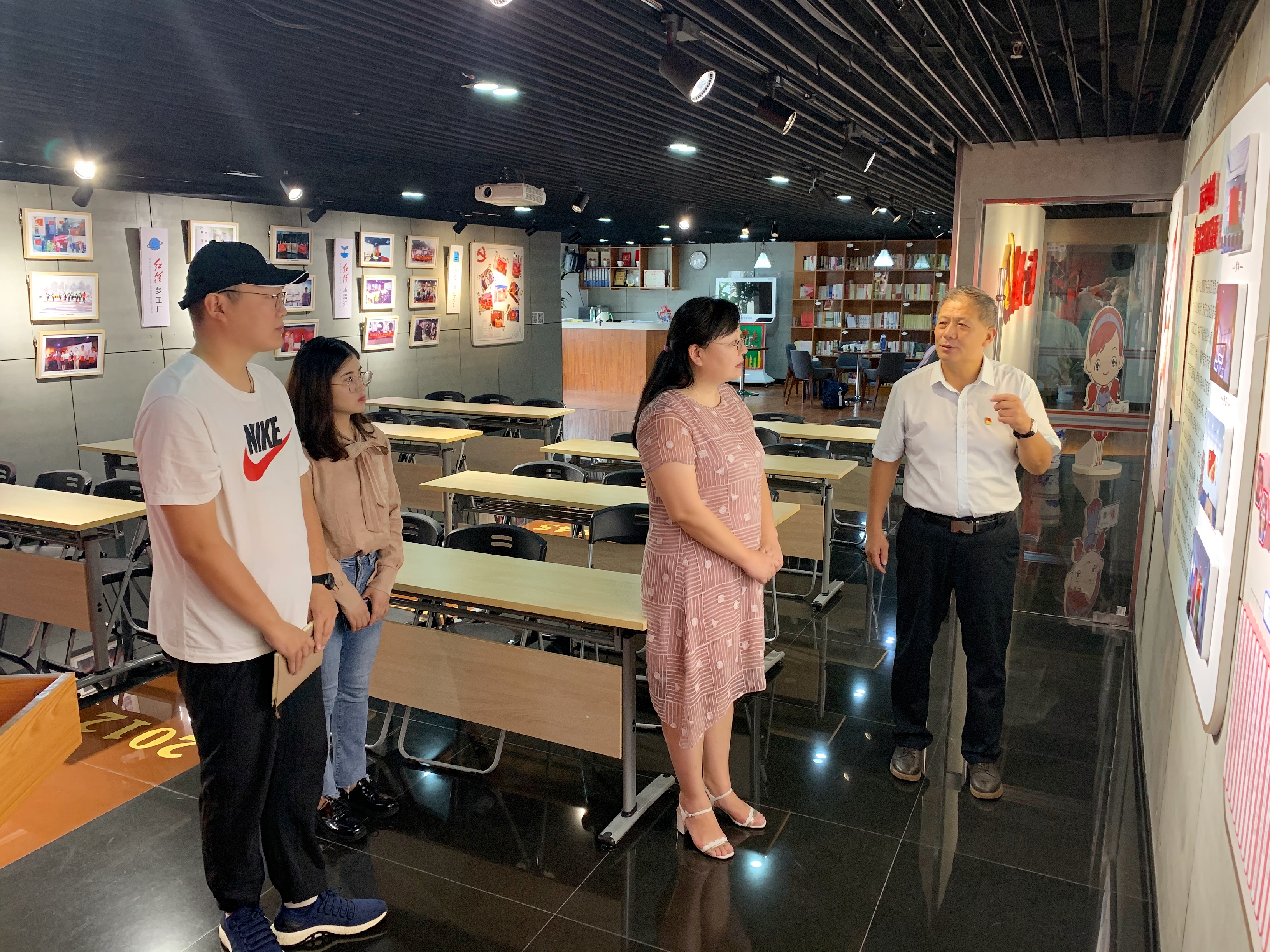 在潘新生副书记陪同下,课题组师生参观了“红领•汇杰”楼宇党建空间,实地体验了党群工作站的一站式服务。潘书记介绍:“这块阵地是由玄武区委和南京市交通集团共同搭建的,这里只是我们‘红领+’楼宇党群服务的旗舰站,还有十几家旗舰点,服务范围辐射党委下属的74家党组织和1000余名在册党员。”
