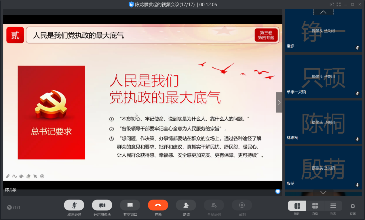 陈龙景就这四个篇章开展讲课,并分享了自己的感悟。全体与会党员结合自身学习经历分享了入党感悟,依次谈了《习近平谈治国理政》第三卷的学习体会,并表示针对第三卷的内容,今后要全面系统学、深入思考学、联系实际学。