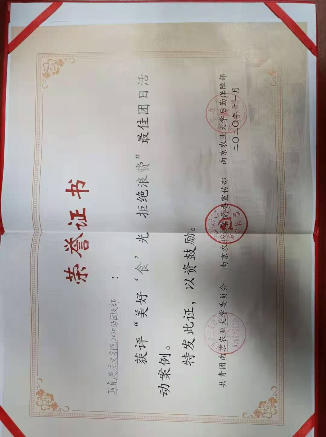 近日,2020年a片成人 “美好‘食’光,拒绝浪费”主题团日实践活动评选结果出炉,a片成人 2020级团支部开展的以“秾马青年行”为题,推行“美好‘食’光,拒绝浪费”团日活动获评最佳团日活动案例。