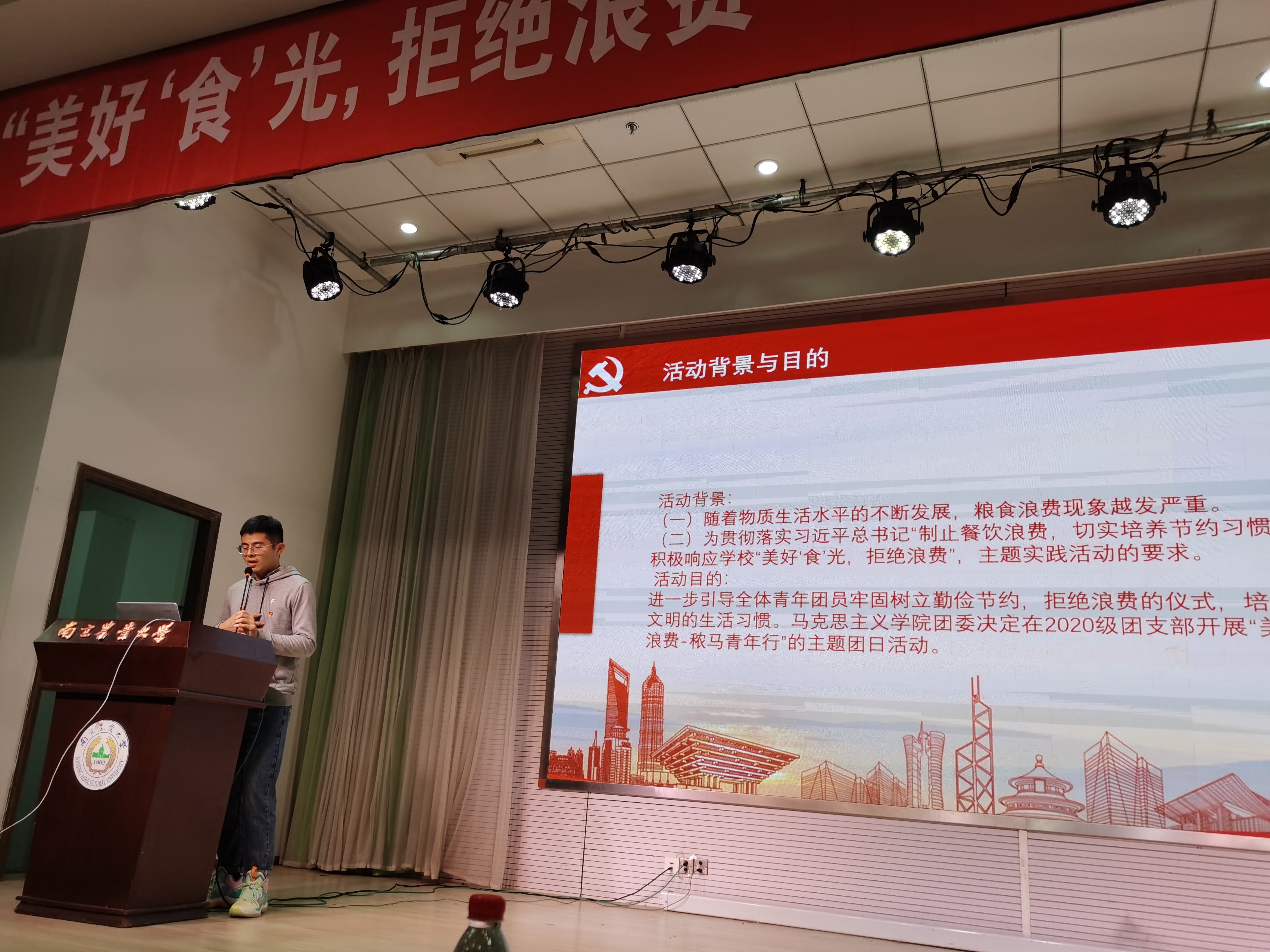 支部团员围绕着“美好‘食’光,拒绝浪费”进行了集体讨论、故事分享。成圳同学以自身在部队的经历为例,为同学们讲述了部队勤俭节约的优良作风;沙茜同学分享了自己与美食的故事,让同学们认识到食物的来之不易,更加坚定了拒绝浪费的决心。同时,“南农马院”微信公众号也进行了相关内容的推送,进一步宣传勤俭节约的优良风尚。