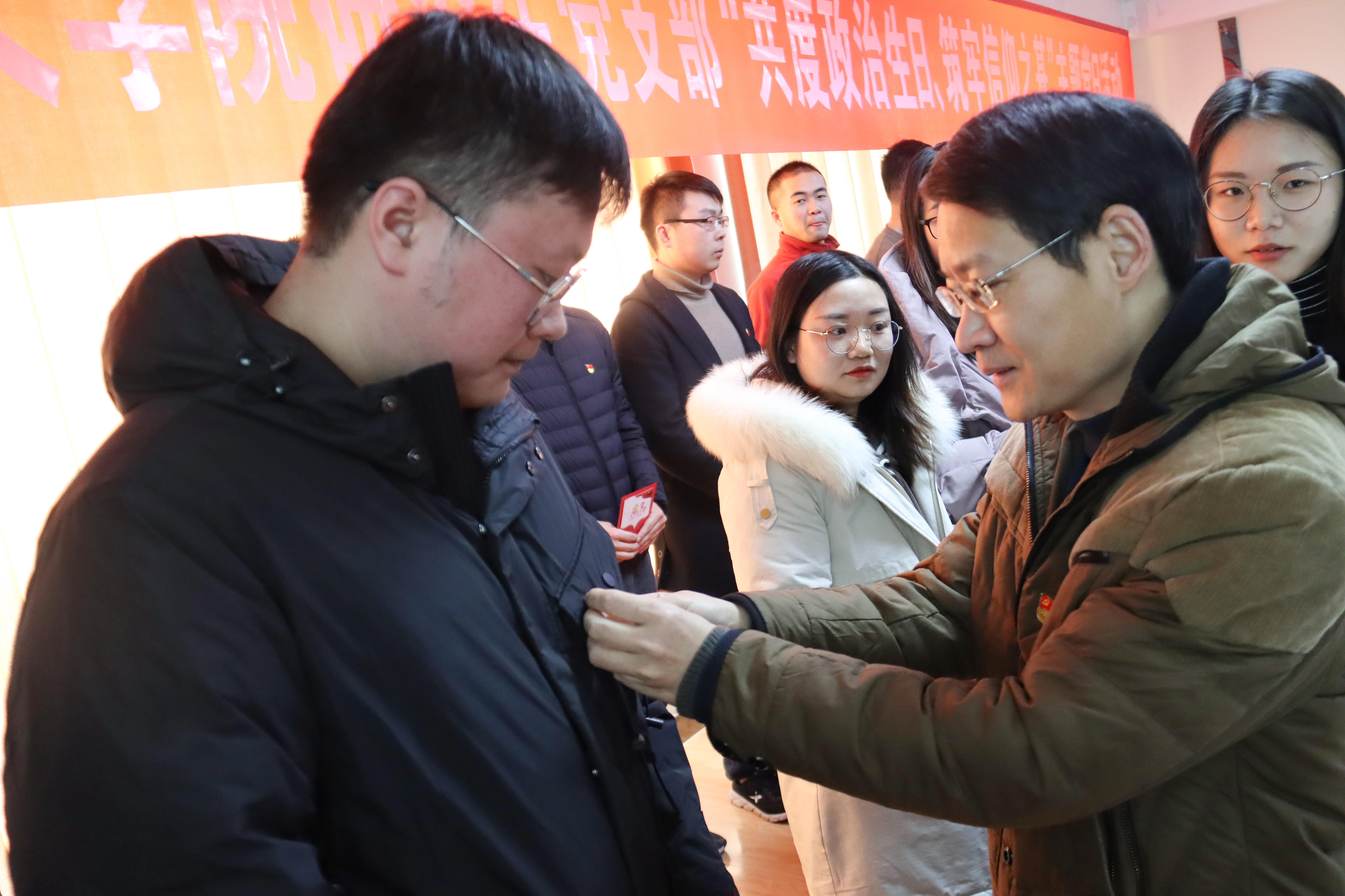 紧接着,屈勇、杨博向过“政治生日”的党员赠送载有组织寄言的“政治生日”贺卡,并为2020年下半年新发展党员佩戴党徽。