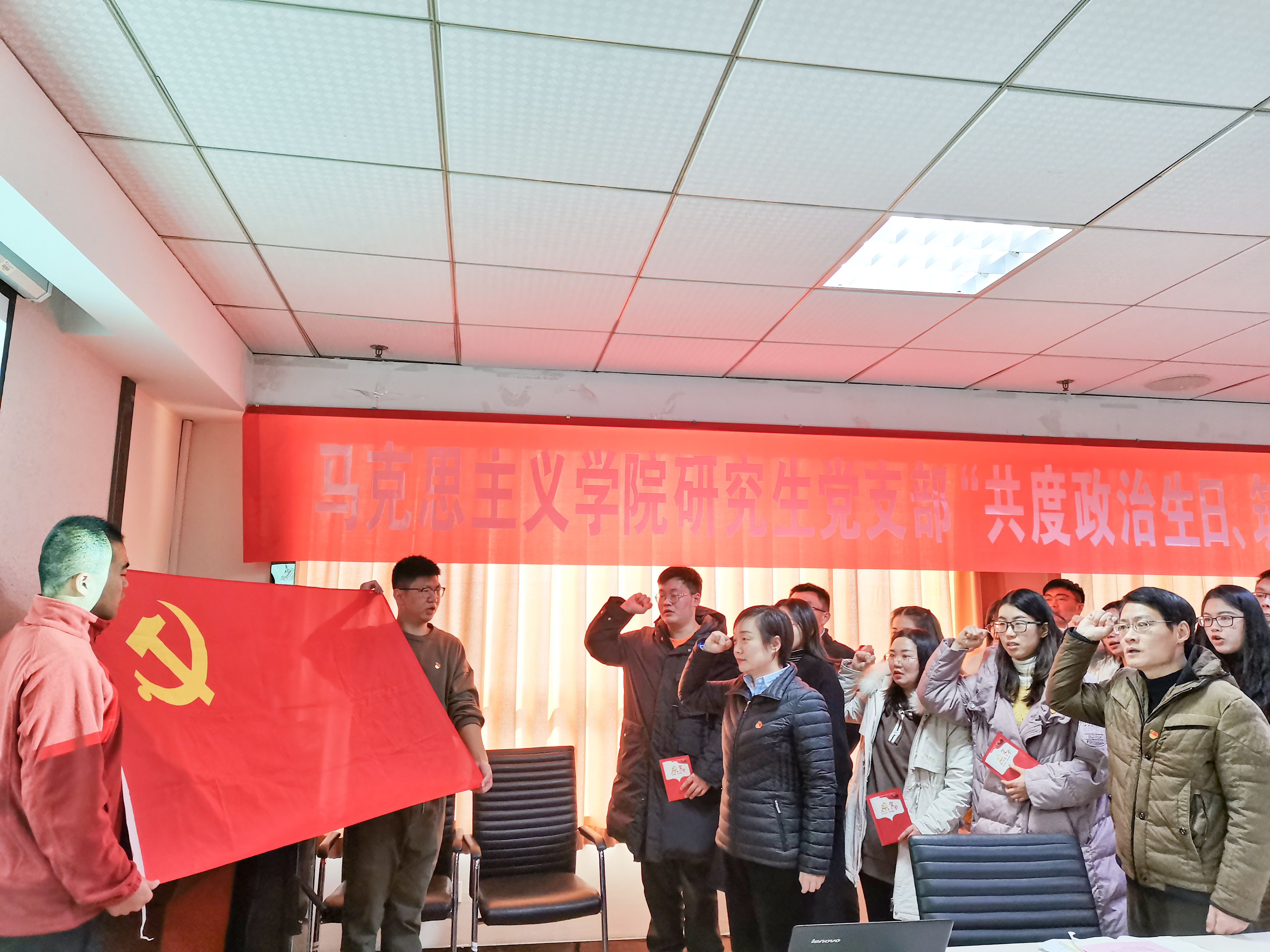 12月17日下午2:30,一场不同寻常的“生日会”在翰苑辅楼303会议室举行。学院党总支副书记屈勇、杨博,辅导员张嫦娥和研究生党支部全体党员30余人齐聚一堂,共度“政治生日”,娓娓道来的初心故事、语重心长的寄语、铿锵有力的誓言,给大家上了一堂直抵人心的“情境党课”。