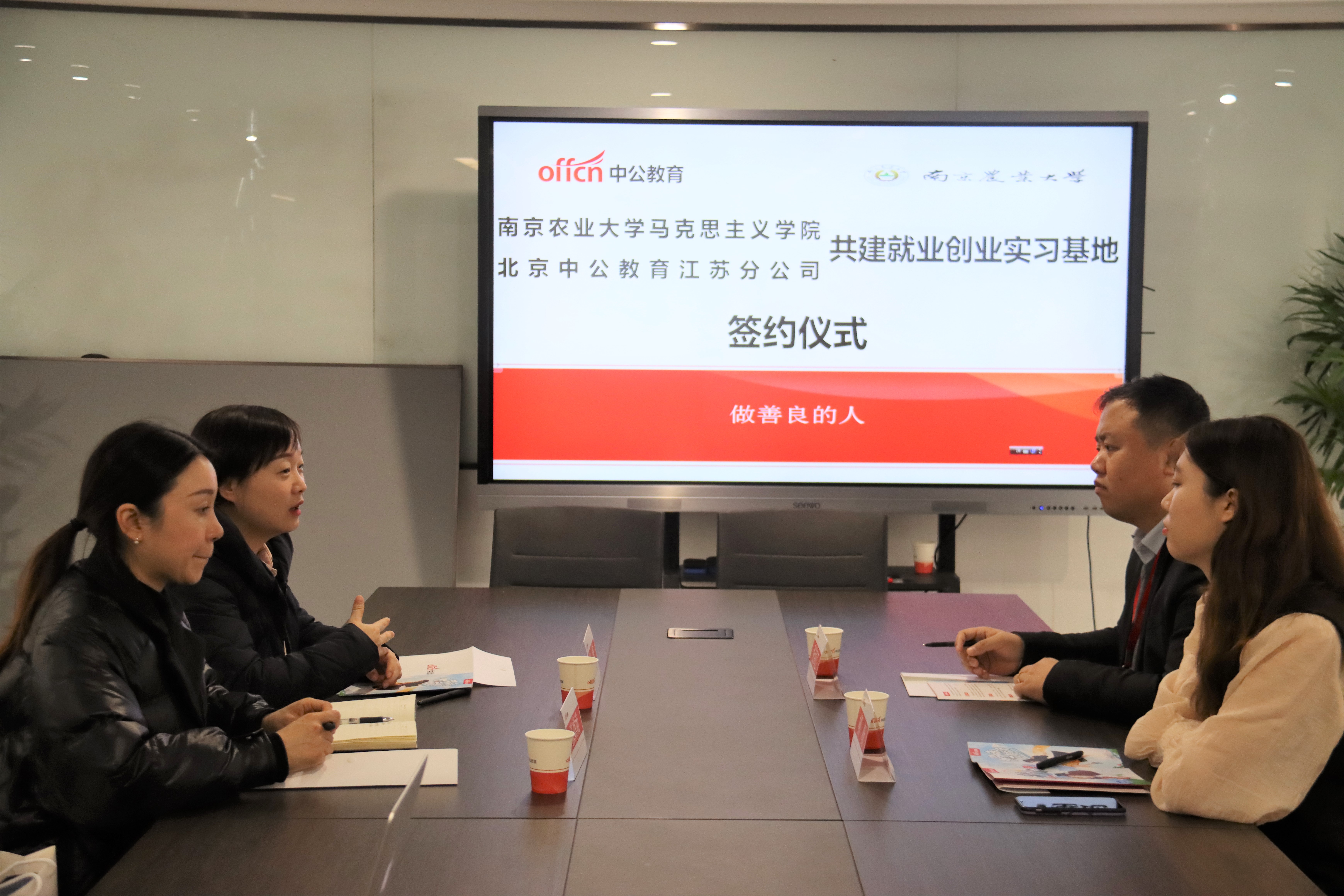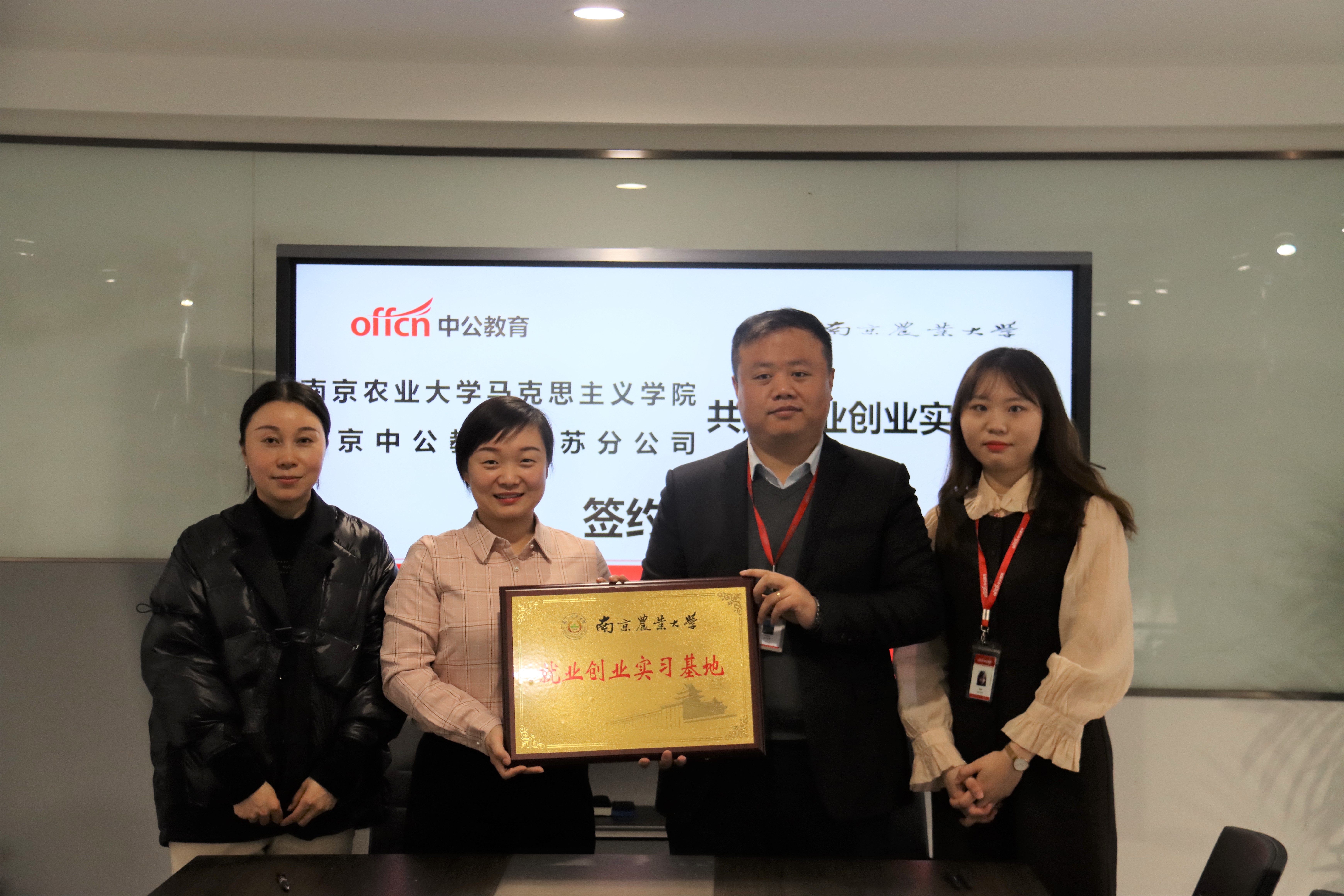 座谈会的最后,双方单位签订共建协议书,并举行“就业实习基地”授牌仪式。签约仪式结束后,双方一同参观了北京中公教育江苏分公司金蝶软件园基地。