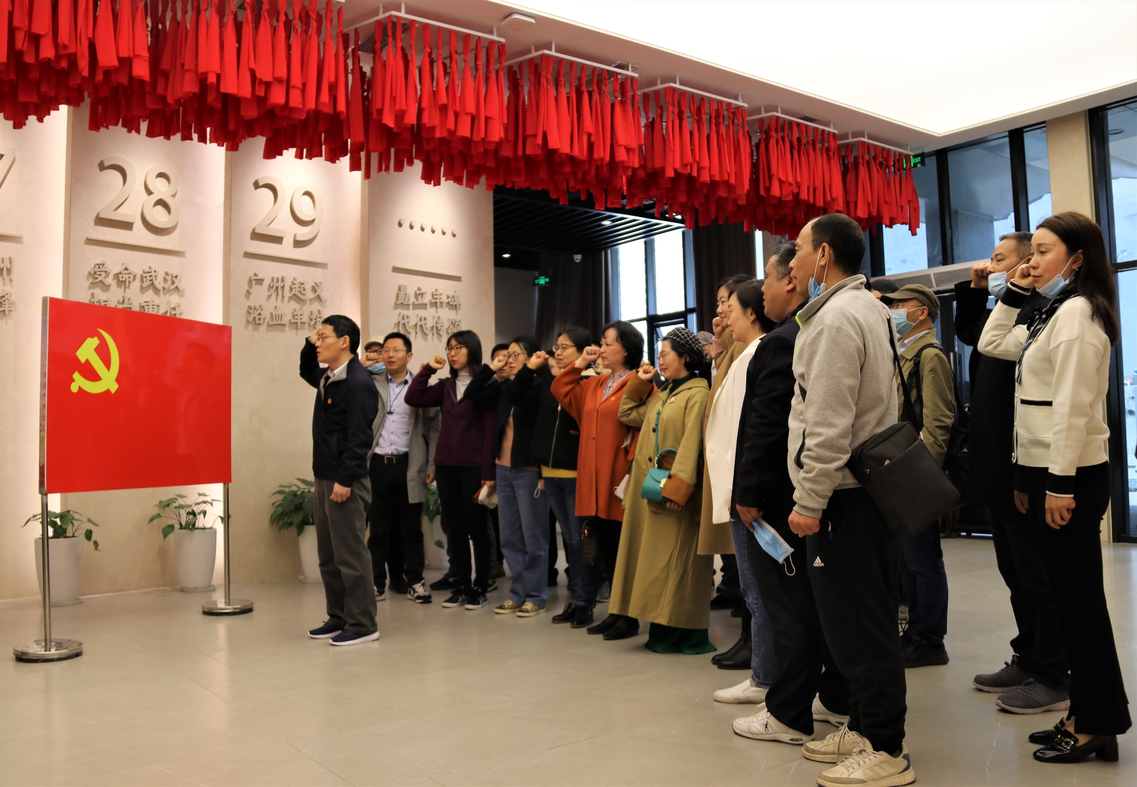 实践学习的第一站,大家来到了张太雷纪念馆。浓缩张太雷二十九个光辉春秋的图片、油画、实物等珍贵历史资料在张太雷生平事迹陈列室展现,庄严肃穆而又热情澎湃,氛围平和而又涤荡心灵。通过倾听讲解员动情讲解、观看3D裸眼视频、探寻文物背后故事,那一段激情燃烧的岁月重现眼前。在党总支副书记屈勇的带领下,全体党员面向党旗,重温入党誓词,忆初心,明使命,决心在今后的工作生活中永葆先进,争当模范。