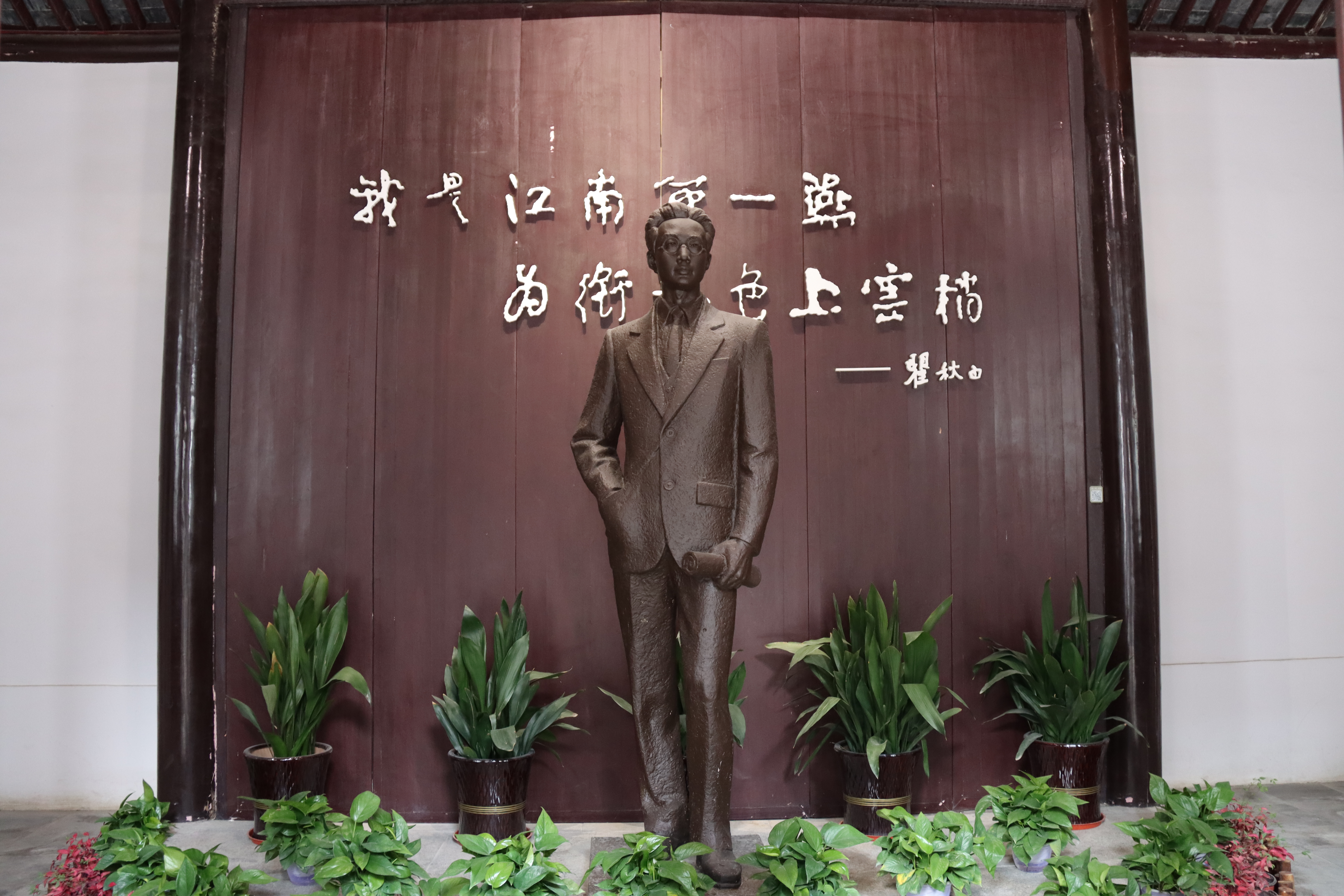 参观的第二站是瞿秋白同志纪念馆与瞿秋白故居。瞿秋白纪念馆是中国重点文物保护单位,也是中国唯一全面收藏、陈列、展示瞿秋白同志业绩、研究瞿秋白思想、弘扬瞿秋白精神的专业场馆。瞿秋白曾任中央委员、中央局委员、政治局常委,主持召开了“八七”会议,在生死存亡的时刻挽救了革命、挽救了党,一生经历重重困境,最终淡然就义。伫立在纪念馆厅内的铜像前,行走在瞿秋白曾经生活过的宅院中,师生党员一行沉浸式感受着瞿秋白踌躇满志的奋斗之路、出类拔萃的聪慧才情和幸福美满的家庭生活,在场的每一位党员都对瞿秋白的革命人生肃然起敬。