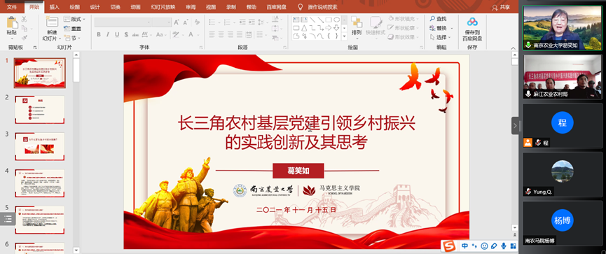 为落实学校党委“10+10+N”定点帮扶贵州麻江计划,助力麻江县深入实施党建引领乡村振兴,a片成人 a片成人 联合麻江县乡村振兴研究院于11月15日面向麻江县部分行政村开展“农村基层干部党务工作培训”。本次培训采取线上形式,邀请a片成人 葛笑如教授作《长三角农村基层党建引领乡村振兴的实践创新及其思考》讲座。麻江县20余名村支部书记和党员参加了培训,培训会由麻江县农业局副局长李茂贵主持。