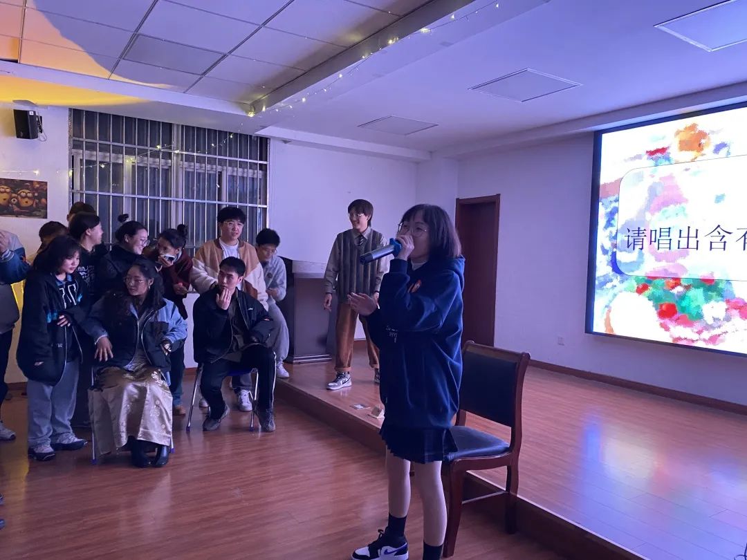在接下来的游戏“音乐奇才”中,每组成员需要能够快速抢到麦克风并唱出带有主持人提示的关键词或属于该范畴的歌词,大家都跃跃欲试,一展歌喉。这个环节充分展示了同学们的歌曲储备量和惊人的反应速度。