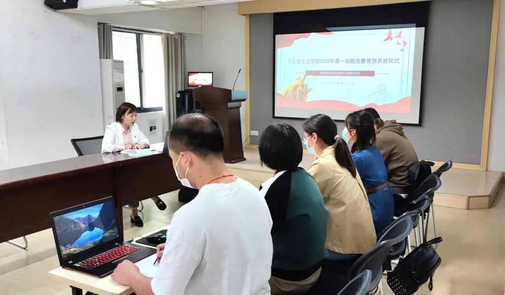 4月20日下午,a片成人 2022年第一期新发展党员培训班开班仪式在学校就业指导中心二楼会议室顺利召开。学院党总支副书记杨博、思政教育主管张嫦娥、本期全体新发展党员参加开班仪式。